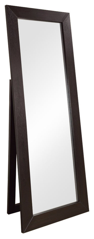 This stunningly gorgeous floor mirror is sure to bring your home decor to the next level. This delightful beveled frame features a robust and rustic natural wood grain with a gorgeous dark cappuccino (Brown) finish. Its weathered design offers a coveted look for your living room or den.
