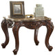 Benzara BM185779 Marble Top End Table With Motif Engraved Angular Wood Feet