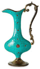 Decorate your kitchen island or stovetop with the Beverage Pitcher, shown here in brass and turquoise. Measuring 14 by 6 inches, this piece is sure to stand out in your space.