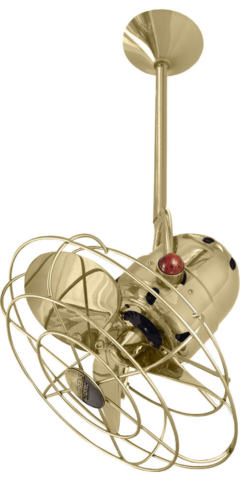 Unique and versatile, the fan head of the Bianca Direcional ceiling fan can be infinitely positioned in a 180-degree arc, forward and reverse, to provide maximum, directional airflow. The Bianca can be hung in small, awkward spaces or in front of HVAC ducts to make more efficient the heating, ventilation or air conditioning of any space.Features: Constructed of cast aluminum, heavy spun and stamped steel, this fan carries a limited lifetime warranty.Each unique motor mount and fan head knob is made of genuine marbleized Bakelite.Made in Brazil. Assembled and tested with care in the USA.Decora-style 3-speed wall switch in white.Includes 10" field cuttable downrod. Downrods can be easily field cut; they are not threaded. Can be installed with a maximum 30" downrod.Flat ceiling canopy. Not compatible with vaulted ceiling canopy.All Matthews Gerbar fans are hand made and not mass produced.Safety cages available for low ceiling applications (sold separately).Fan Head is Infinitely Adjustable 180 Degrees in Forward and Reverse PositionsMatthews-Gerbar fans do not oscillate on their own. The fan heads can be pivoted to change the direction.