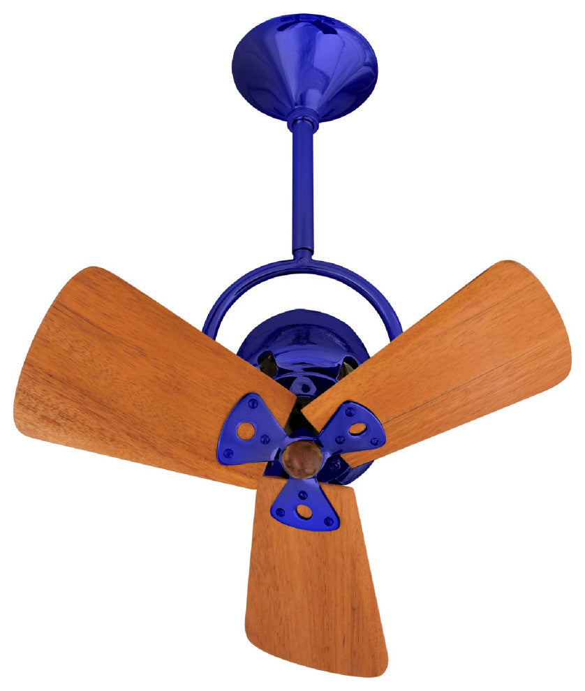 Unique and versatile, the fan head of the Bianca Direcional ceiling fan can be infinitely positioned in a 180-degree arc, forward and reverse, to provide maximum, directional airflow. The Bianca can be hung in small, awkward spaces or in front of HVAC ducts to make more efficient the heating, ventilation or air conditioning of any space.Features: Constructed of cast aluminum, heavy spun and stamped steel, this fan carries a limited lifetime warranty.Each unique motor mount and fan head knob is made of genuine marbleized Bakelite.Made in Brazil. Assembled and tested with care in the USA.Decora-style 3-speed wall switch in white.Includes 10" field cuttable downrod. Downrods can be easily field cut; they are not threaded. Can be installed with a maximum 30" downrod.Flat ceiling canopy. Not compatible with vaulted ceiling canopy.All Matthews Gerbar fans are hand made and not mass produced.Safety cages available for low ceiling applications (sold separately).Fan Head is Infinitely Adjustable 180 Degrees in Forward and Reverse PositionsMatthews-Gerbar fans do not oscillate on their own. The fan heads can be pivoted to change the direction.