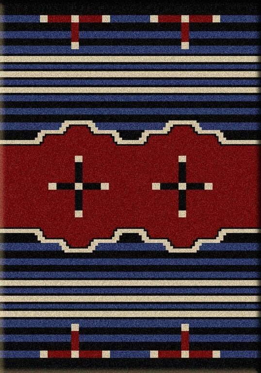 The spirit of this rug is steeped in Southwest history. Made from ''pure-blue'' dyes. Made in America!
