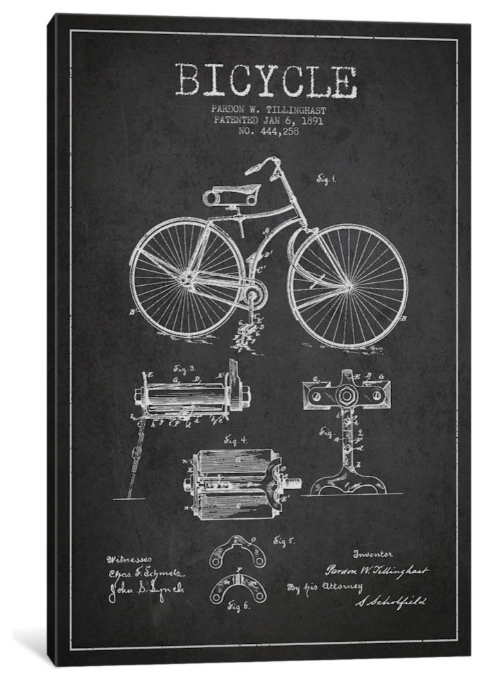 "Bike Charcoal Patent Blueprint" by Aged Pixel, 18"x12"x1.5"