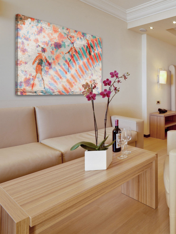 Striking and unique, the "Bird Dance" Print on Canvas by Parvez Taj will bring your walls to life. Printed on canvas, this 60 inch wide by 40 inch tall contemporary artwork will make a statement in any living room, dining room, or bedroom.- Fine art canvas print by Parvez Taj- Professionally hand stretched- Gallery wrapped in sustainable, non-warping wood- Arrives ready to hang- Made in the USA- Includes a certificate of authenticity- Artist signature on the front
