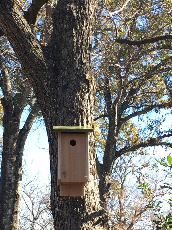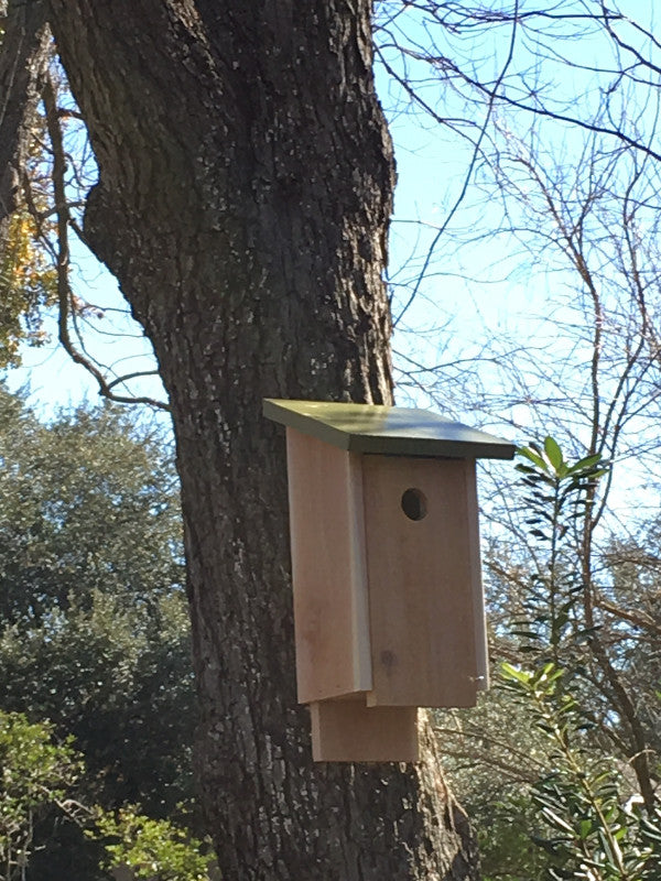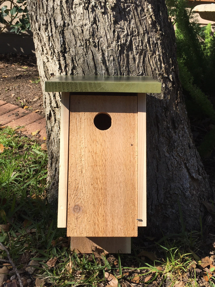 Functional Bird House to provide a home to birds. It is made of premium, rough cedar so that the birds can cling when entering or leaving. Its vented on the bottom and top. Door opens and closes for easy cleaning. Handcrafted and each home is unique. Also comes in natural or red roof. Made in the USA.