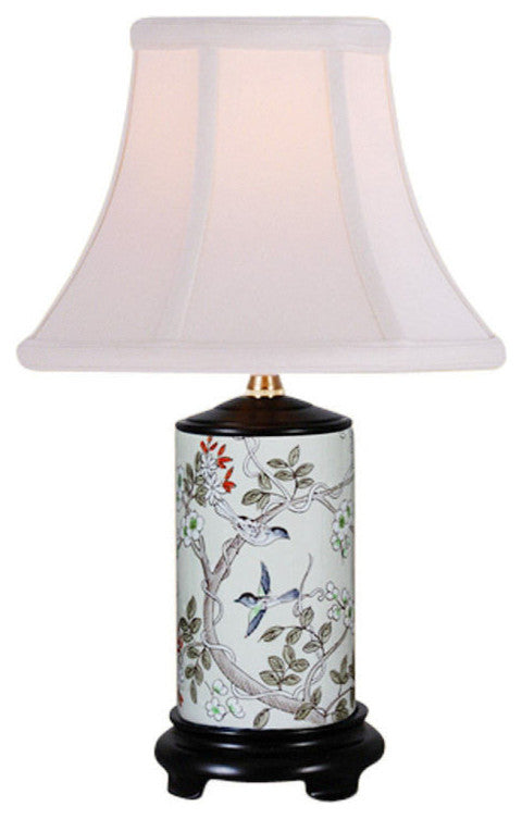 We are committed to providing high quality and affordable products with exceptional customer services. Our consistent efforts in Research and Development will provide a solid foundation to produce more high quality new products for our customers for many years to come. Bulb Type: 1 WAY SOCKET (High and Low Switch) Wattage: 25 Number of Bulbs: 1 UL LISTED: YES Bulbs Not Included Comes with Shade and Finial We are Asian Style Furnishing and we are here to help you add beautiful Asian colors and history to your home. We speciallize in porcelain items as well as creating fantastic lighting with our pieces. All of our items are for decorative use only not good for food storage. All of our items are for decorative use only not good for food storage. We have been in business for over 30 years and I am the second generation to be in this business. I am excited to bring my energy and family experience to those in need of some Eastern influences in their home. Please note : As most of our porcelain pieces are hand made and hand painted they may be slightly different from the photo in both shape and the way it is even colored! We do our best to find the one that is most common but sometimes they will be slightly different. Bird in Tree Motif Cylindrical Porcelain Vase Table Lamp 15" Country of Origin: China Dimensions (in inches): Height: 15" Length: 9" Depth:9" With shade
