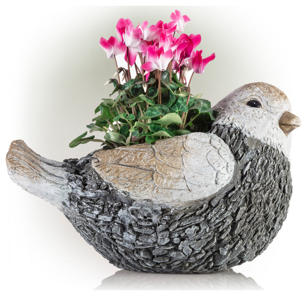Like a creature often found in nature, our Bird Planter features a detailed, weathered look that will add personality to your indoor or outdoor space. This adorable accessory will present your plants in charming appeal on a patio''s side table or a console in your entryway.