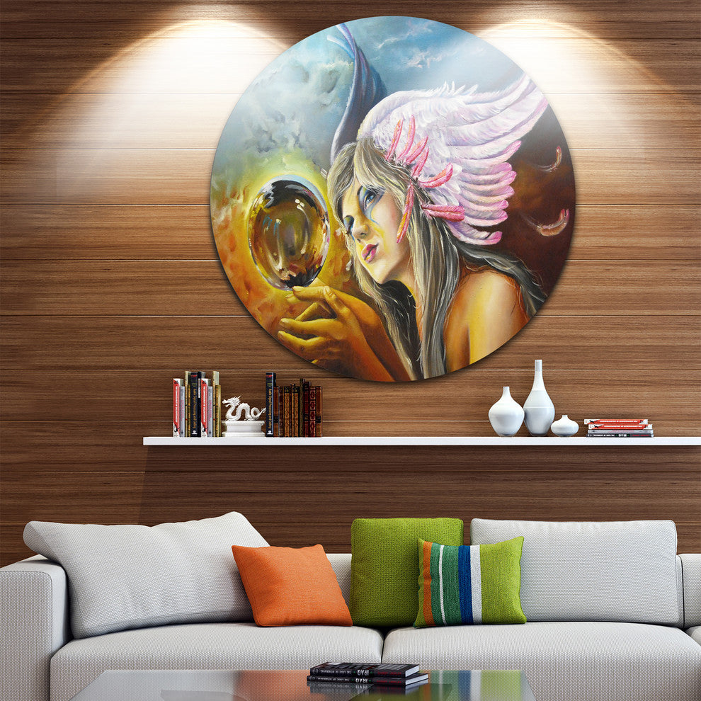 Birth Of An Idea, Abstract Digital Art Disc Metal Artwork, 36"
