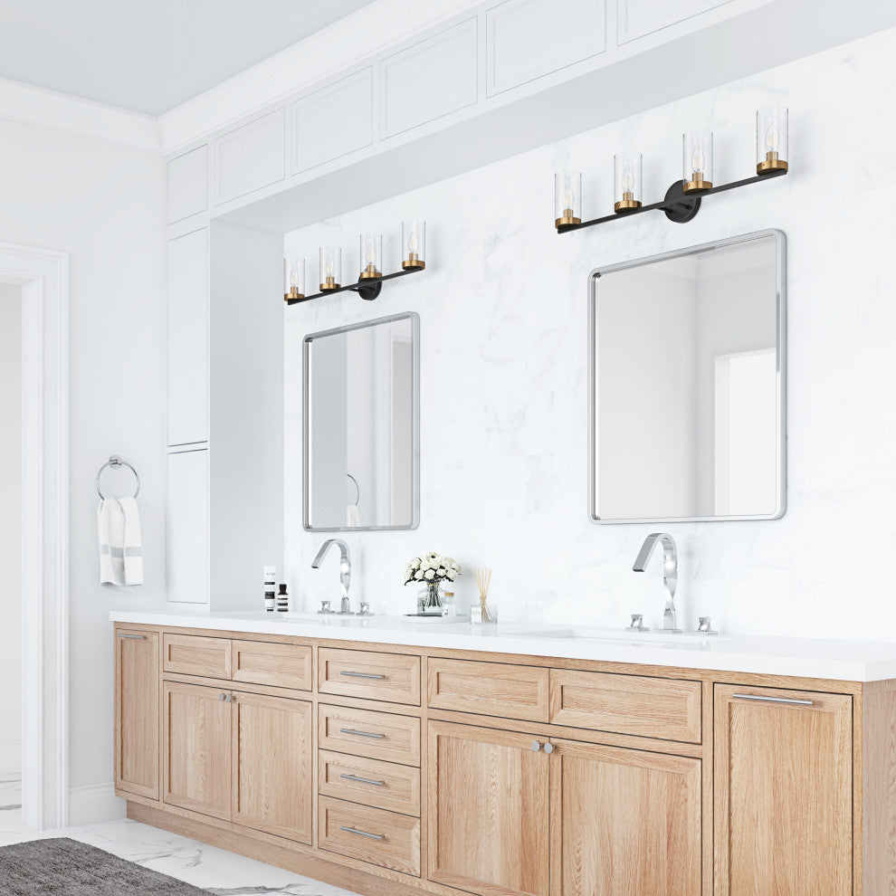 Black 4-Light Clear Cylinder Glass Design Bathroom Vanity Light