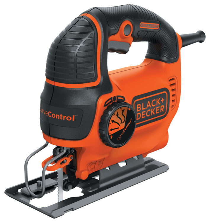 The Black & Decker 5 Amp Jig Saw features Curve Control technology, allowing you to adjust the saw''s Orbit in 1 of 4 customized settings to help complete your specific project. The 5 Amp variable-speed motor generates up to 3,000 SPM of cutting power. This saw can make bevel cuts of up to 45 degrees and features an adjustable shoe for a stable cutting platform. It also has a new and improved Wire Guard which provides clear line of sight for precise cuts.Highlights:Adjustable shoeBevel shoeDust blower3/4" length of stroke0 - 3.000 SPMsVariable speedCurvecontrol-4 adjustable orbit settingsCompact handleRubber overmoldIncluded:(1) BDEJS600C Jigsaw(1) Jigsaw Blade