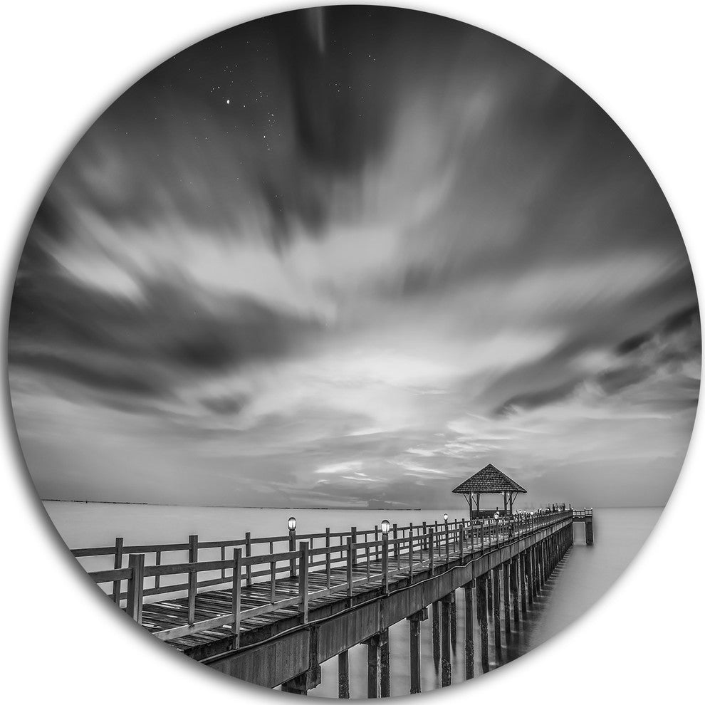Black And White Wooden Bridge And Sky, Sea Pier Round Wall Art, 11"
