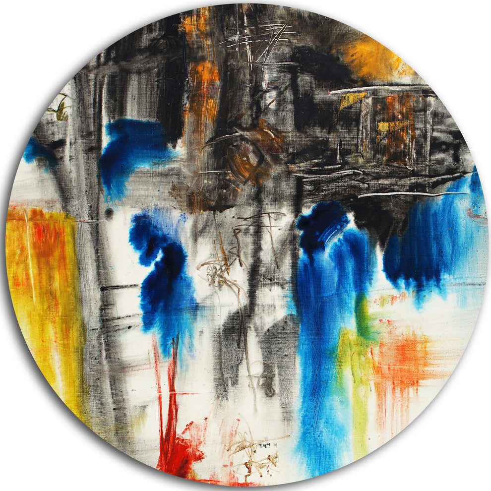 Bring Contemporary Abstraction to your home with this large Circle Metal wall art. This Black, Blue and Yellow Pattern Metal Artwork makes it the focal point of any room or office.