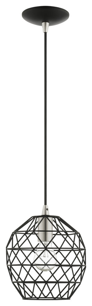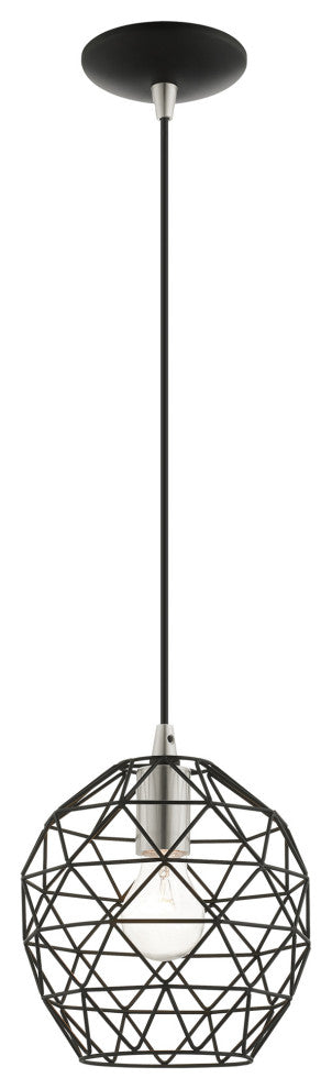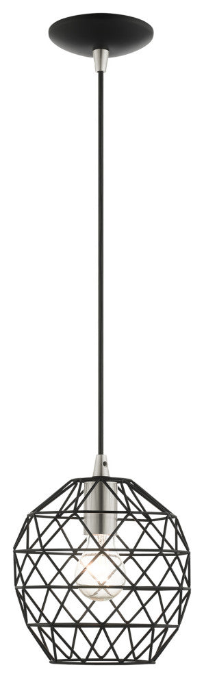 The Geometrix collection adds a stylish touch of contemporary inspiration featuring a classic geometric cage design. This single-light mini pendant, shown in a black finish with brushed nickel accents, will fit comfortably almost into any room d�cor. With superb craftsmanship and affordable price, this fixture is sure to tastefully enhance your lifestyle.