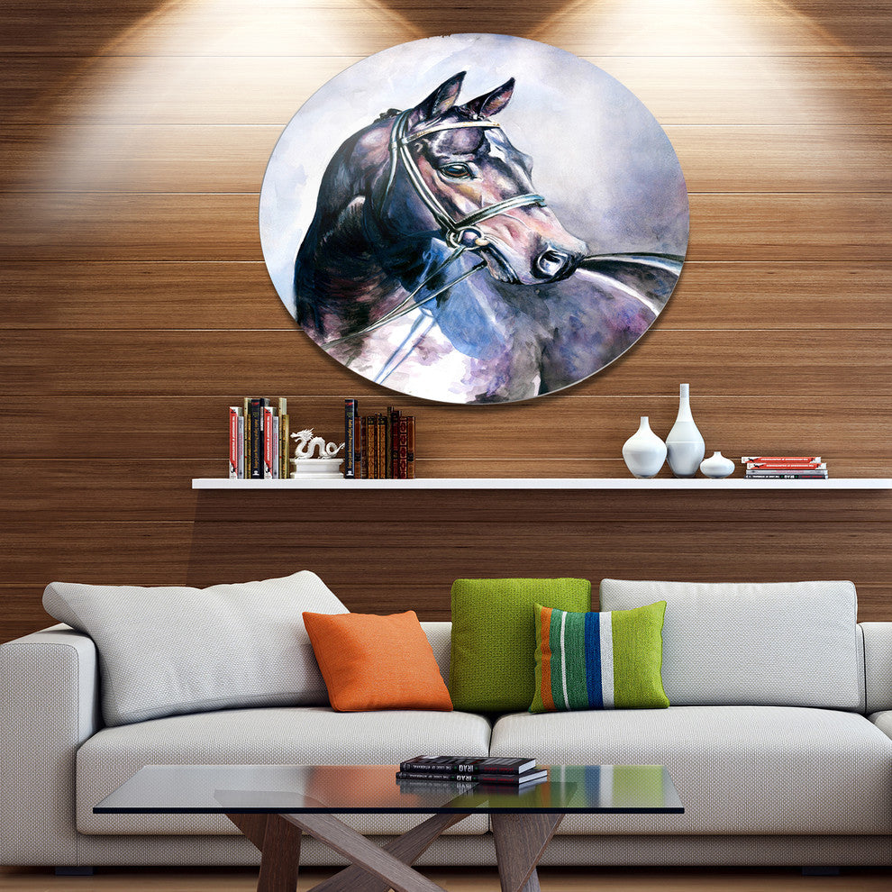 Black Horse With Bridle, Animal Round Wall Art, 23"