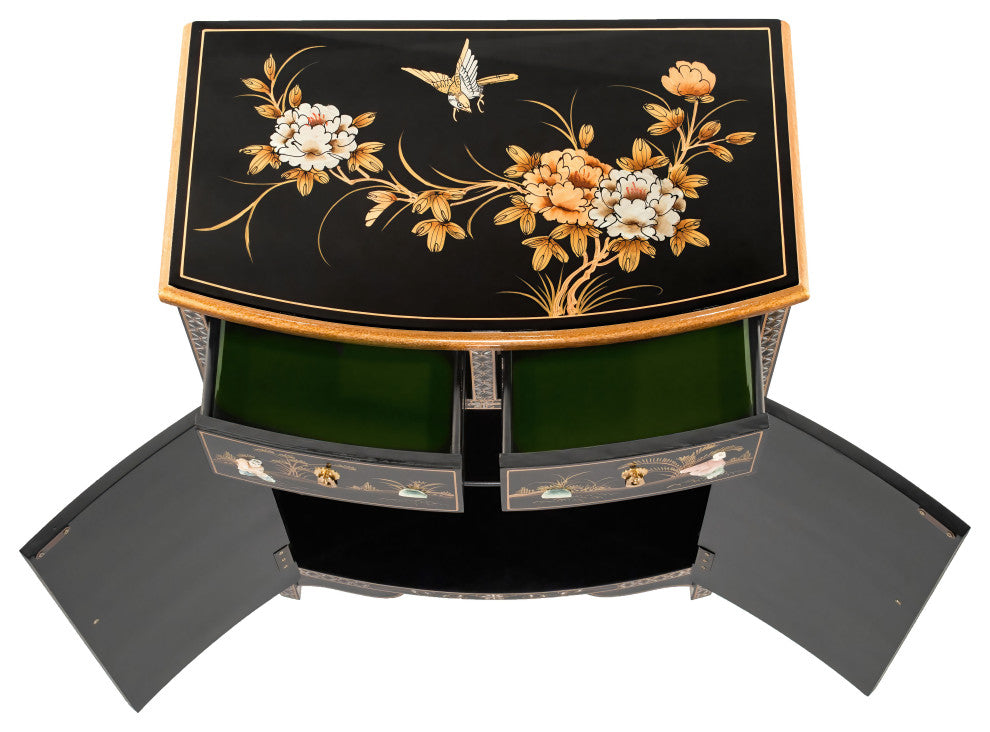 Black Lacquer Half-Round Cabinet Royal Ladies