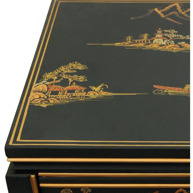 Hand Painted - A master artist with an eye for detail has painted an exotic Chinese landscape on a luxurious black lacquer finish. Unique to the very brushstroke, no two pieces are exactly alike.