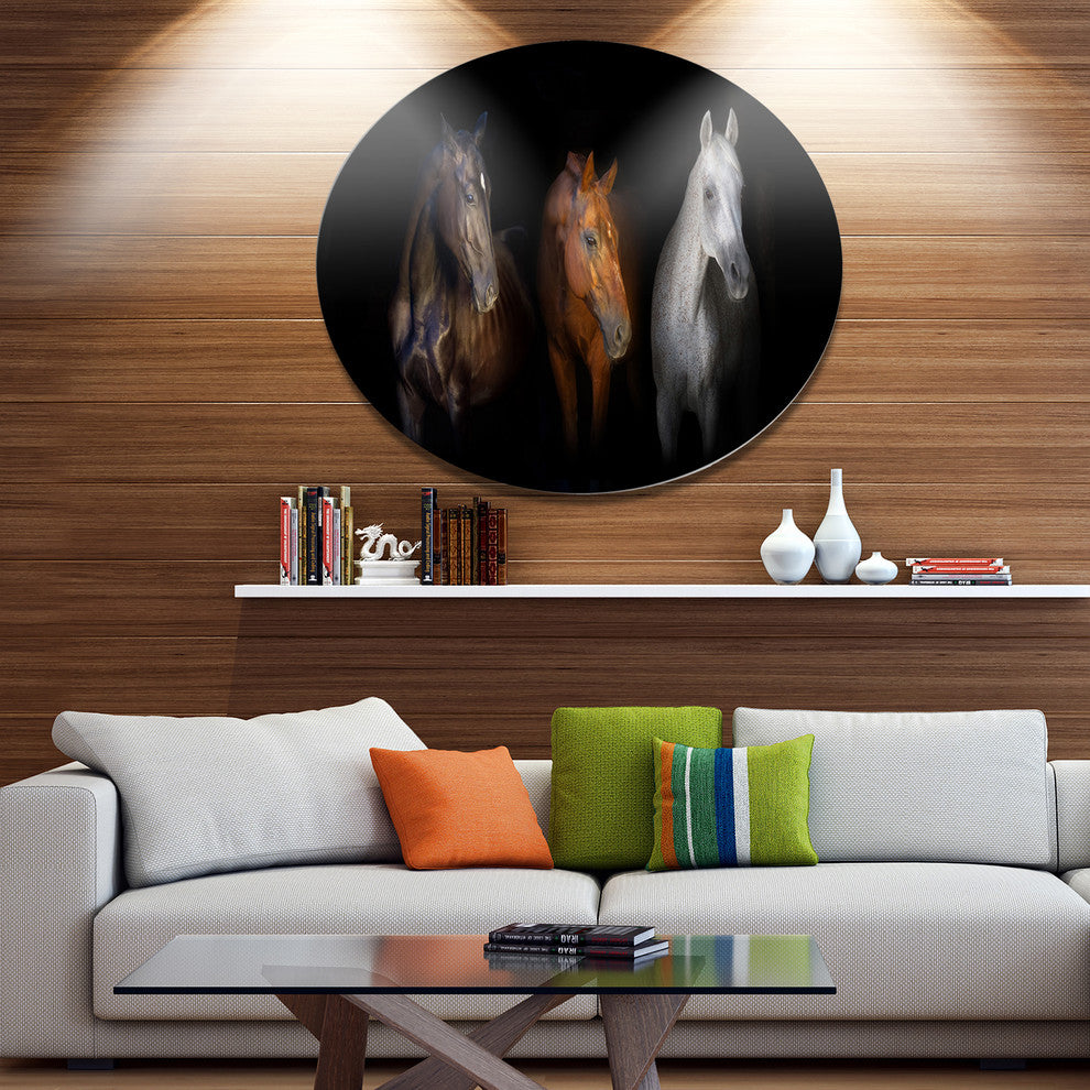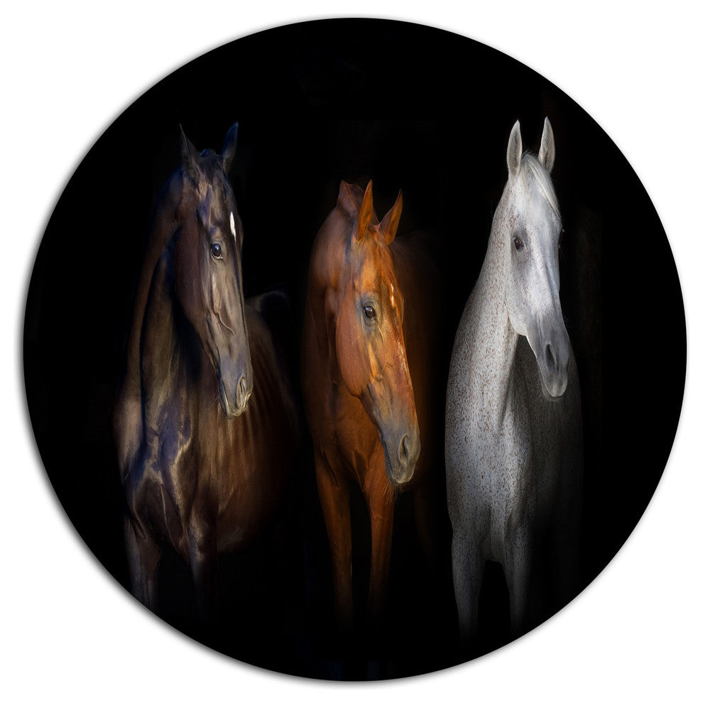 Black Red And White Horses, Animal Round Wall Art, 11"