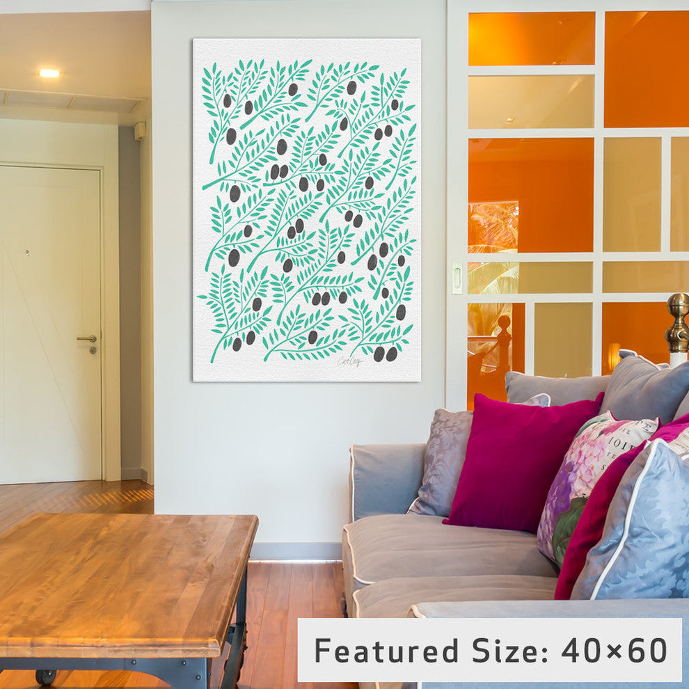 "Black Turquoise Olive Branches Artprint" by Cat Coquillette, 40x26x1.5