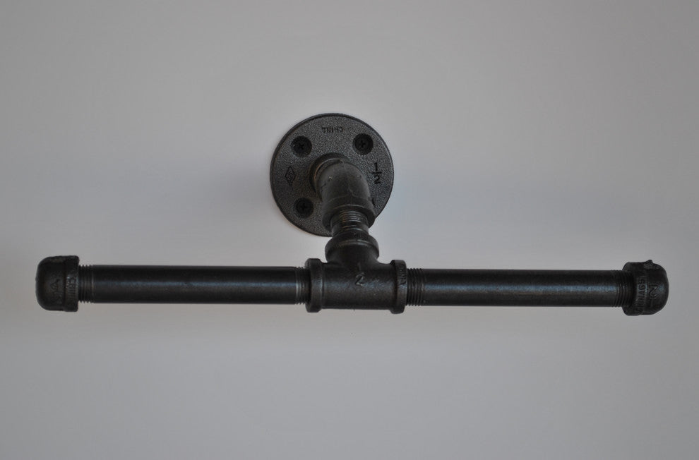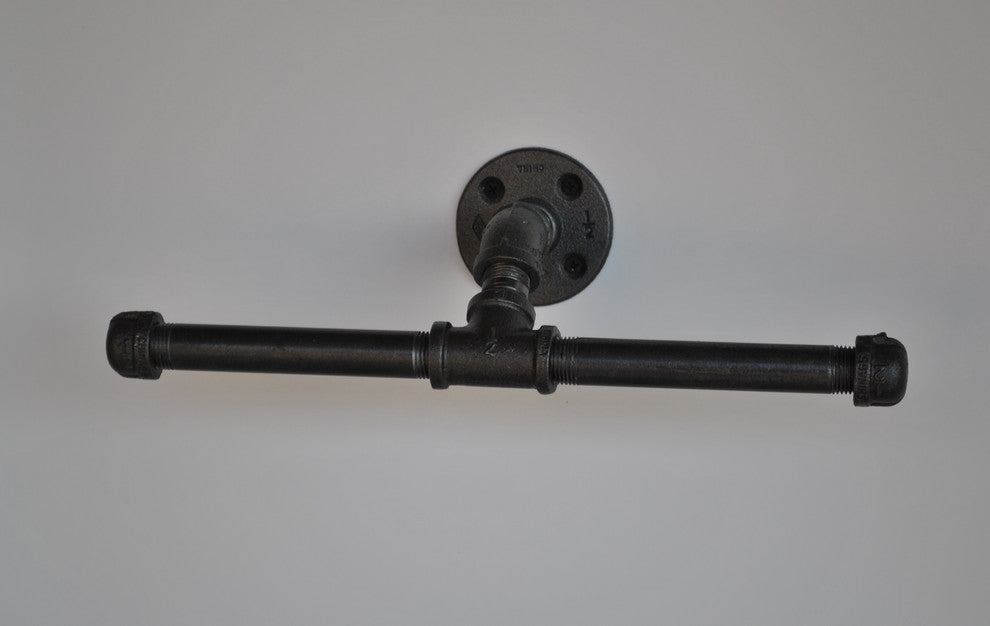The latest Urban Industrial decor item for your bathroom. Ideal for loft, office, commercial and retail space. This product is constructed from plumbing pipe and fittings. We clean it after final assembly, then apply three coats of protective product to retain the natural gun metal color. Designed to accommodate both standard or extra capacity tissue rolls. Mounting screws are included.