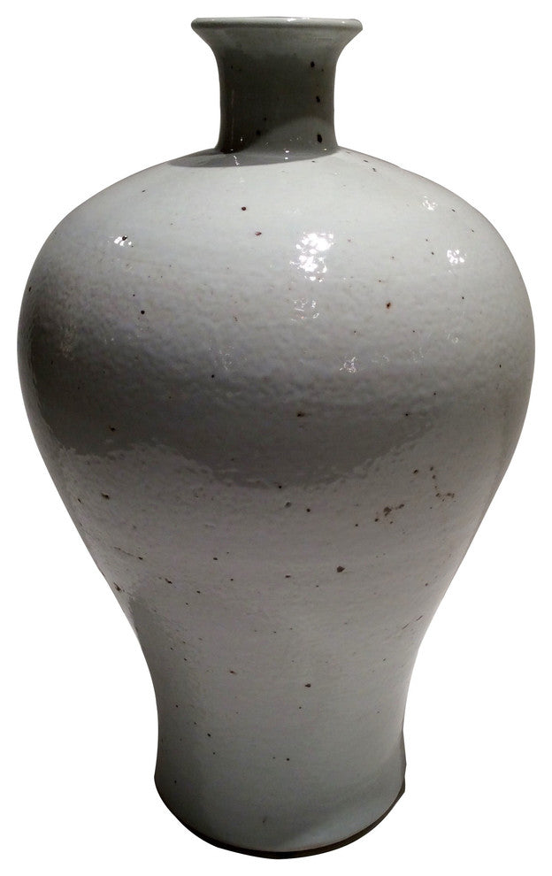 Create a unique display on a console table or spruce up a window ledge with the Blanc De Chine Mei Ping Vase. Made of porcelain, this decorative piece measures 8.75 by 14 inches and has cement coloring.