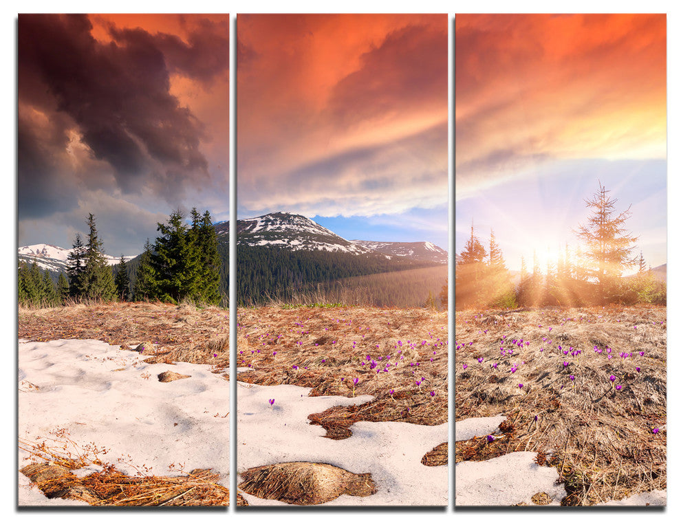 "Blooming Crocuses in Mountains" Photo Canvas Print, 3 Panels, 36"x28"