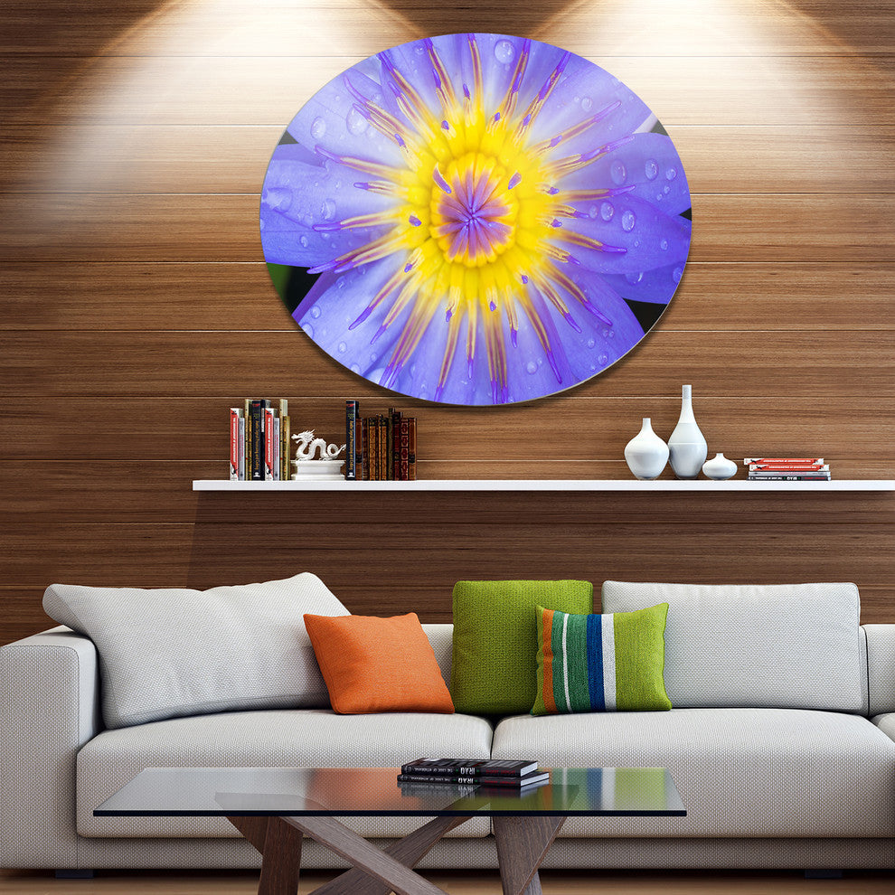 Bring Contemporary Abstraction to your home with this large Circle Metal wall art. This Blooming Violet Lotus Close-Up Metal Artwork makes it the focal point of any room or office.