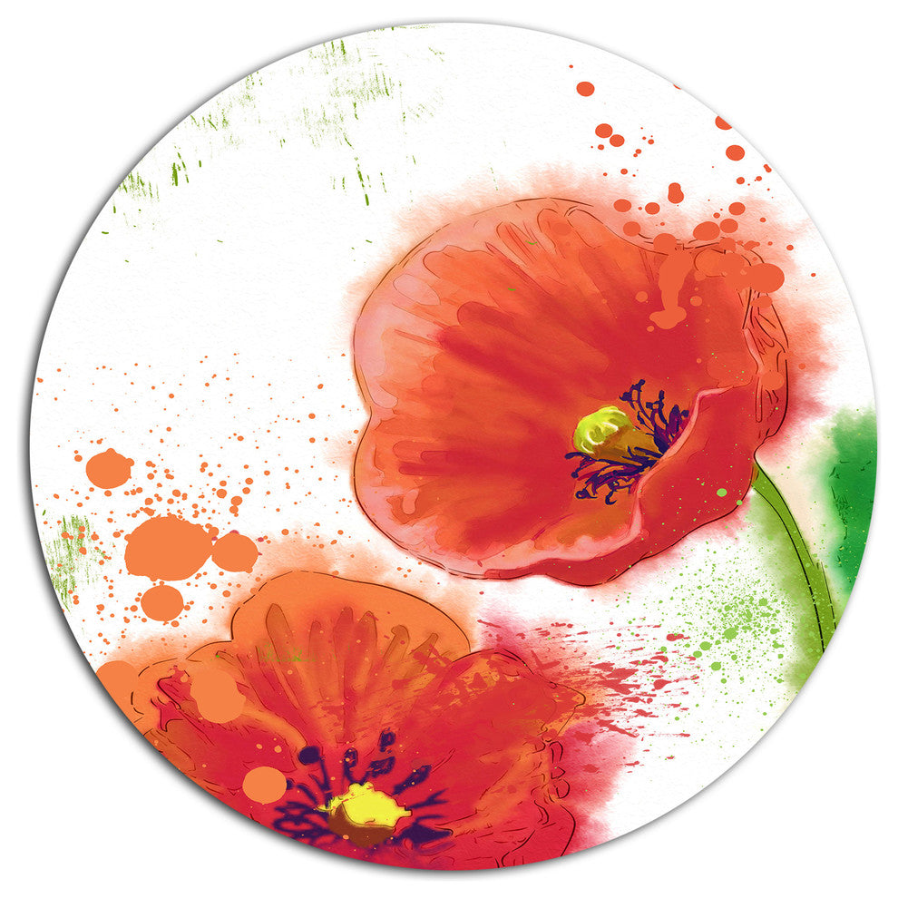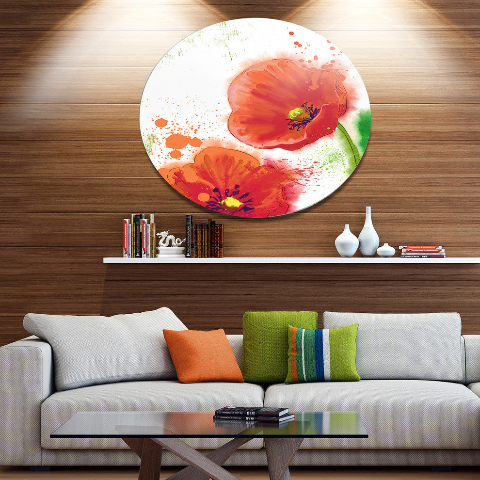 Bring Contemporary Abstraction to your home with this large Circle Metal wall art. This Bloomy Red Tulips Watercolor Metal Artwork makes it the focal point of any room or office.