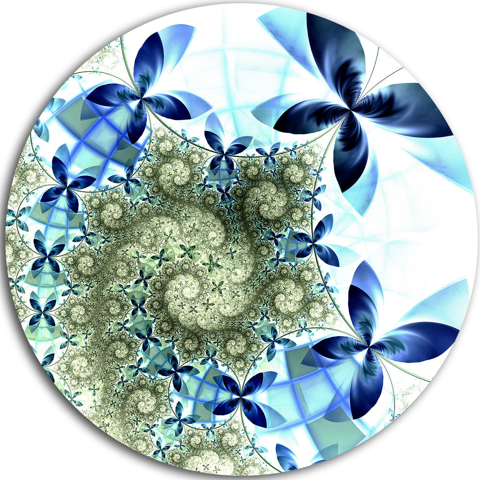 Blue And Green Fractal Flowers, Floral Round Metal Wall Art, 36"