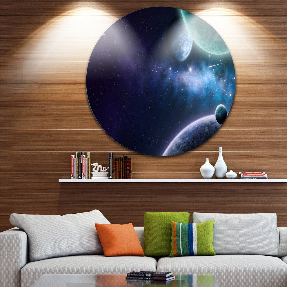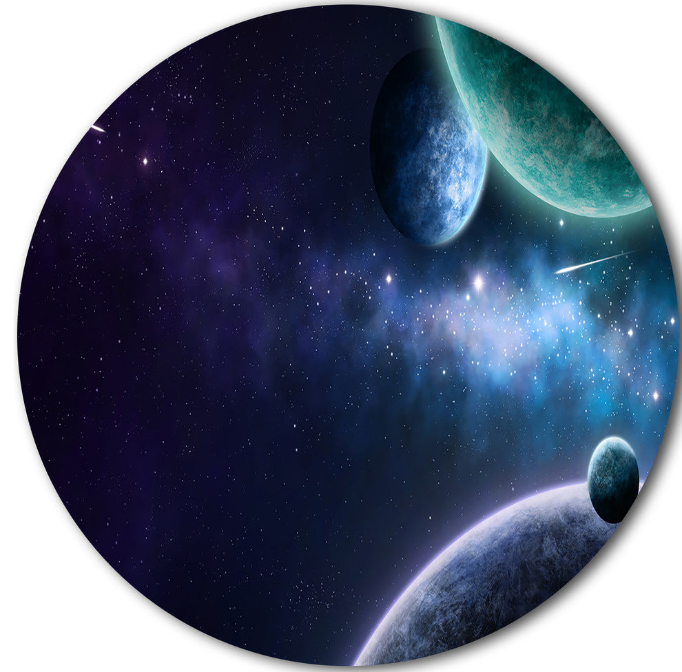 Blue And Purple Nebula, Contemporary Disc Metal Wall Art, 36"