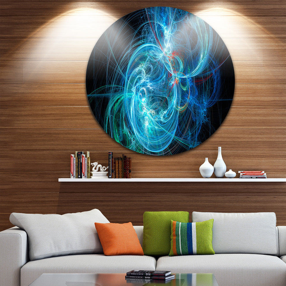 Bring Contemporary Abstraction to your home with this large Circle Metal wall art. This Blue Ball of Yarn Metal Artwork makes it the focal point of any room or office.
