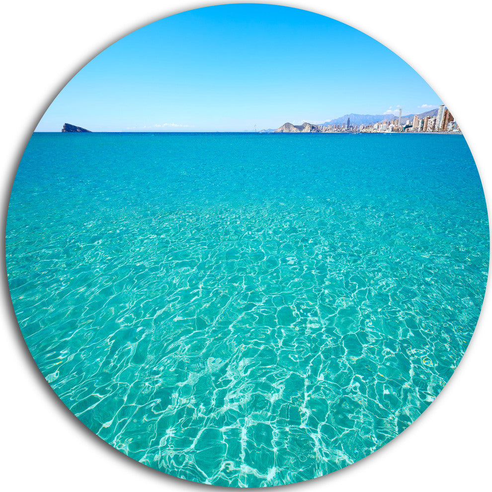 Blue Benidorm Levante Beach, Seashore Round Metal Wall Art, 23"
