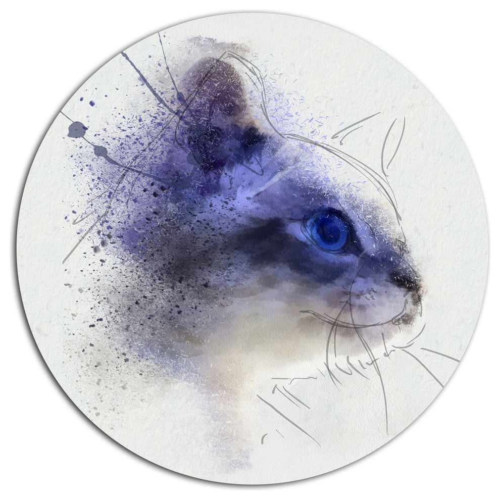 Bring Contemporary Abstraction to your home with this large Circle Metal wall art. This Blue Cat Face Watercolor Sketch Metal Artwork makes it the focal point of any room or office.