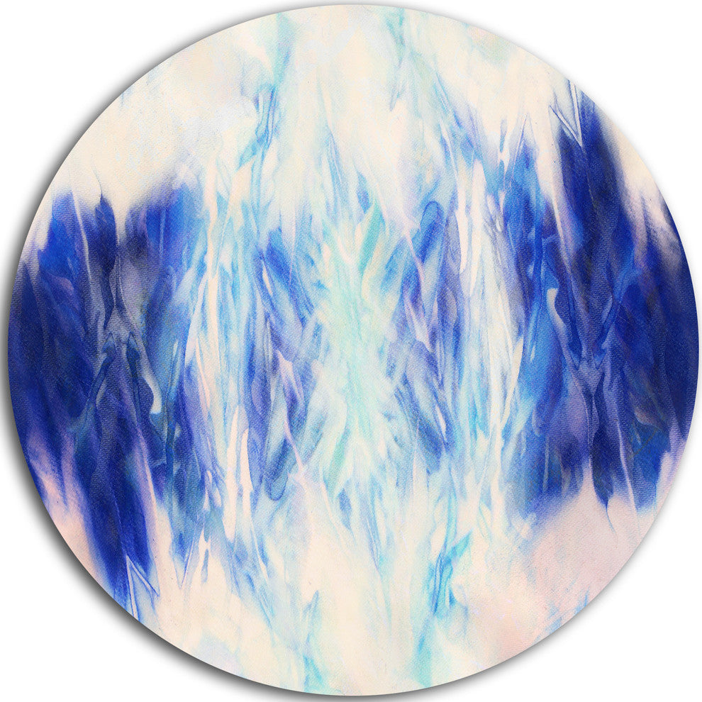 Blue Collage With Spots, Abstract Round Wall Art, 23"