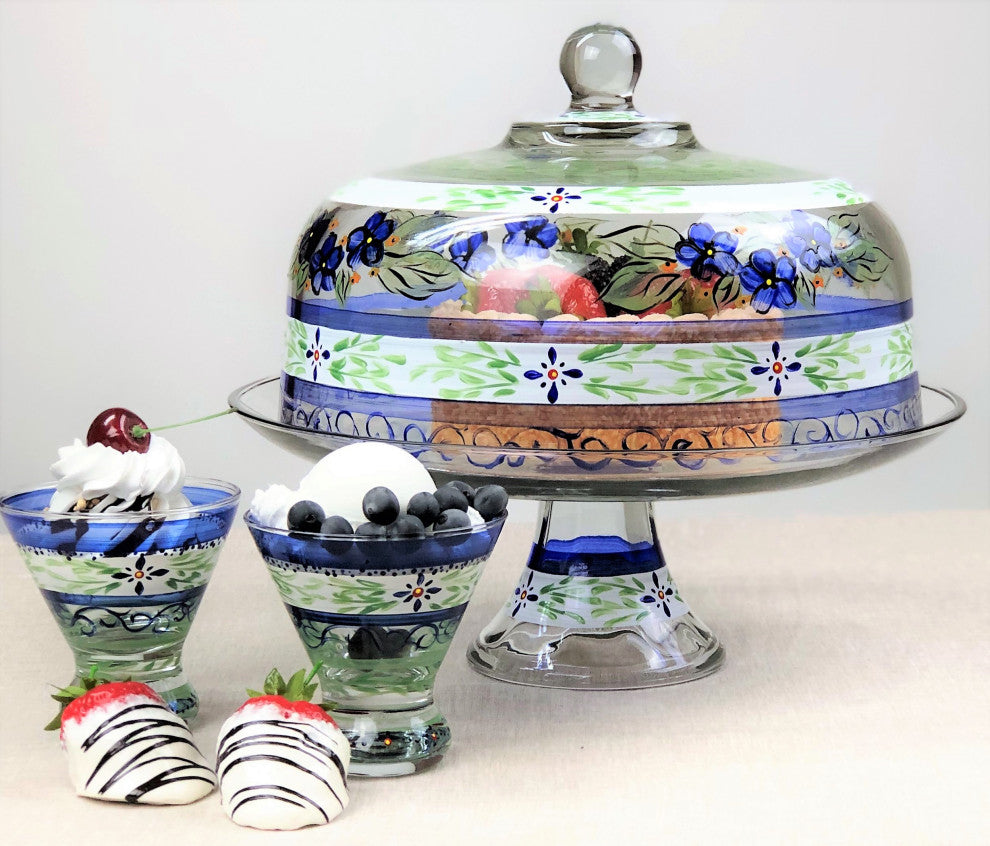 This lovely hand painted cosmopolitan is a blue floral design which works beautifully with Polish Pottery. Works great as a dessert dish as well. Something to be handed down from generation to generation. Proudly hand painted in the USA.