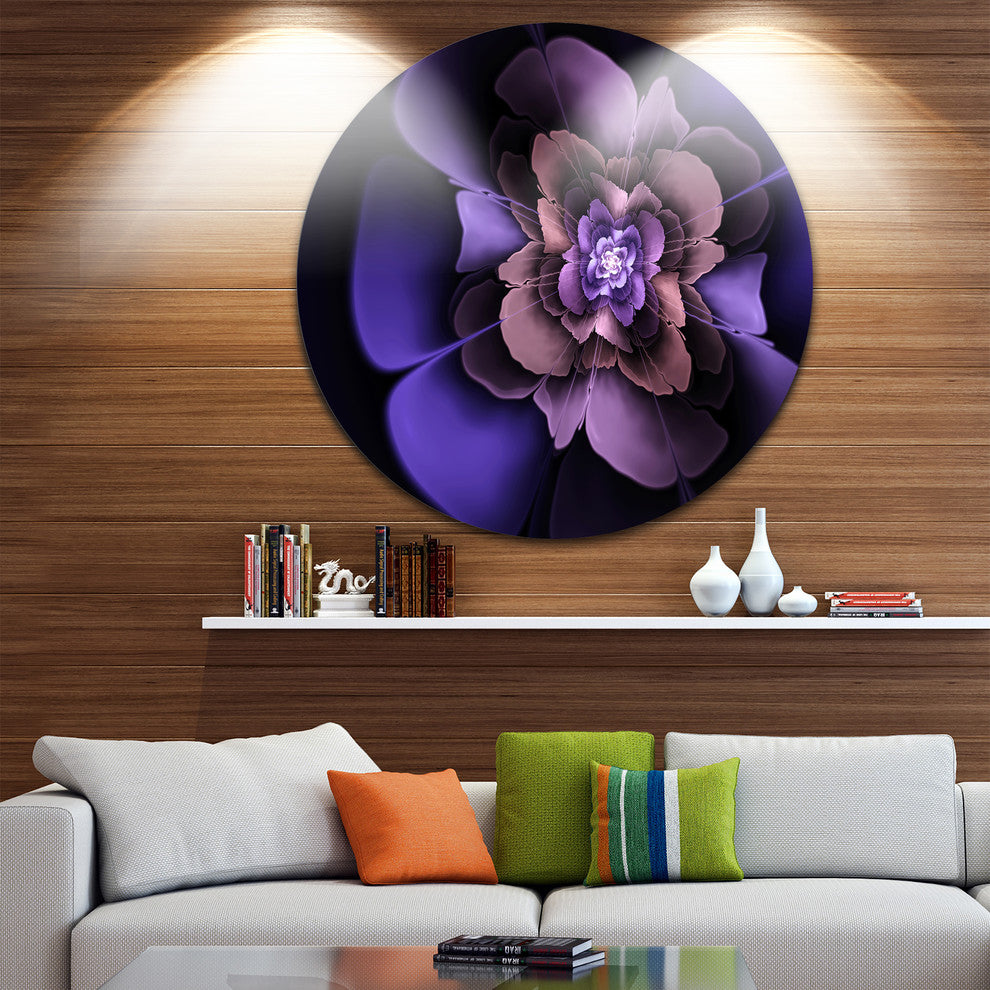 Bring Contemporary Abstraction to your home with this large Circle Metal wall art. This Blue Fractal Flower in Dark Metal Artwork makes it the focal point of any room or office.