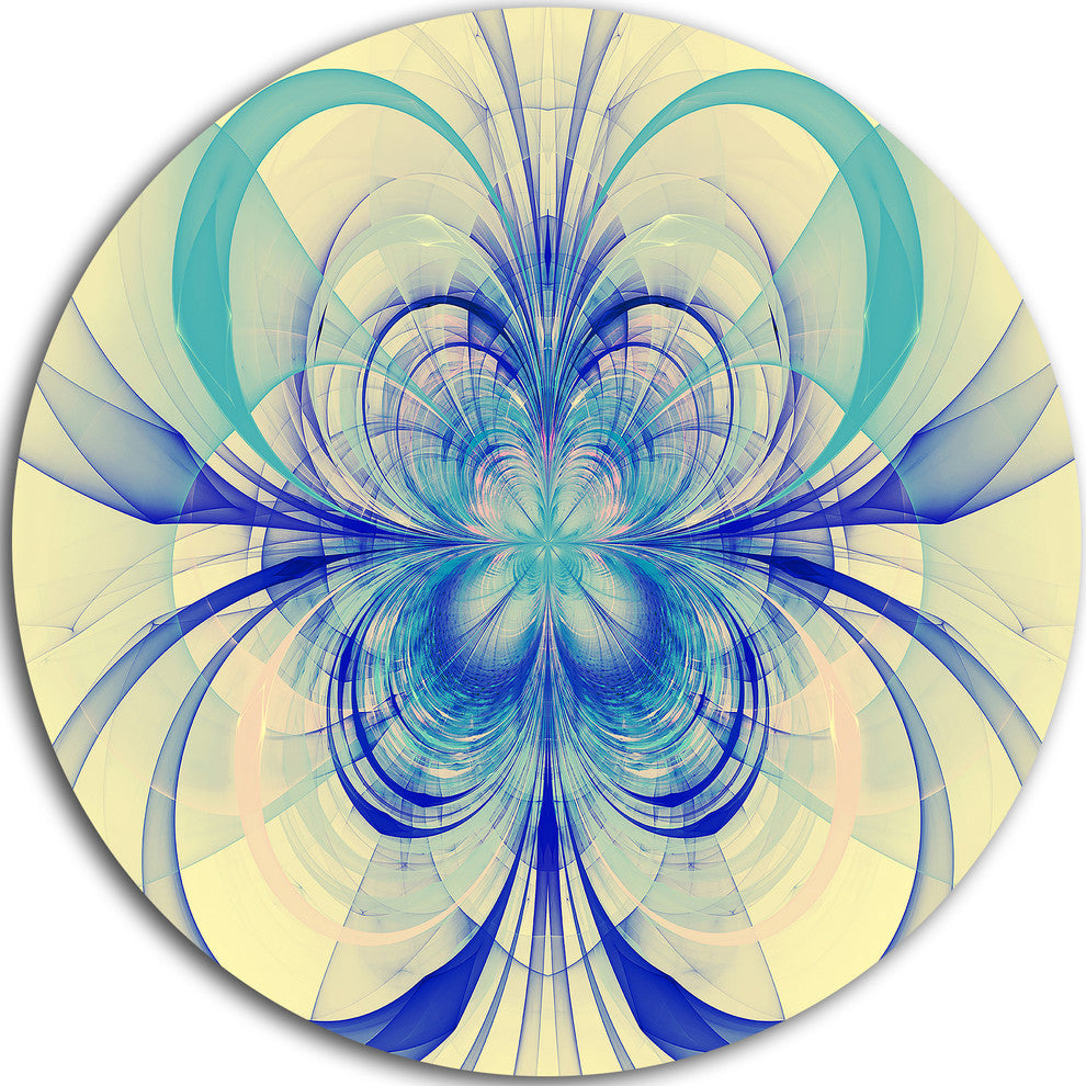 Blue Fractal Flower Pattern, Floral Digital Art Disc Metal Artwork, 23"