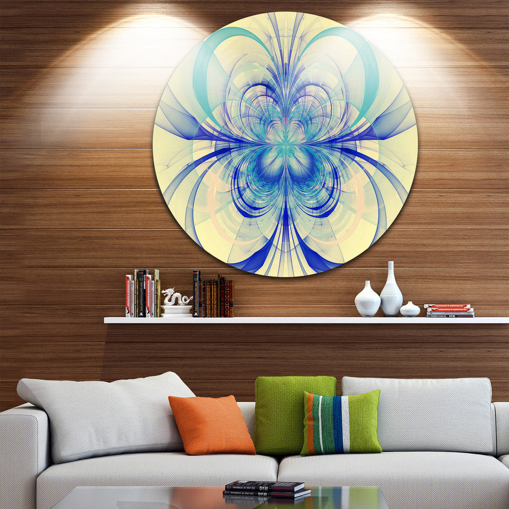 Bring Contemporary Abstraction to your home with this large Circle Metal wall art. This Blue Fractal Flower Pattern Metal Artwork makes it the focal point of any room or office.