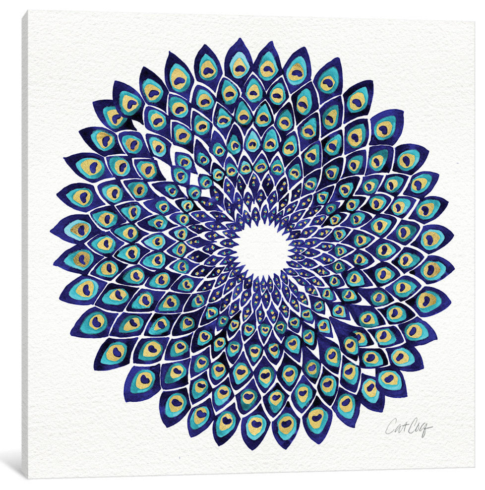 "Blue Gold Peacock Artprint" by Cat Coquillette, 37x37x1.5