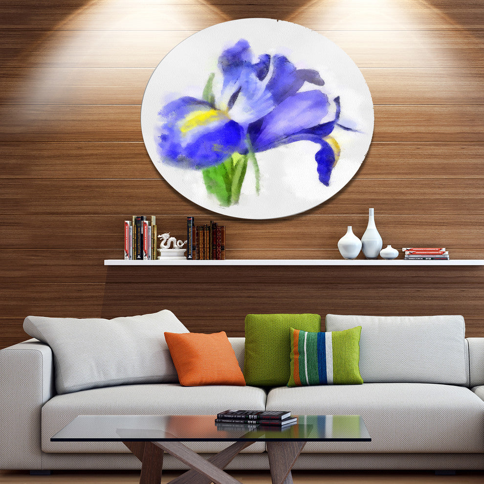 Bring Contemporary Abstraction to your home with this large Circle Metal wall art. This Blue Iris Illustration Watercolor Metal Artwork makes it the focal point of any room or office.