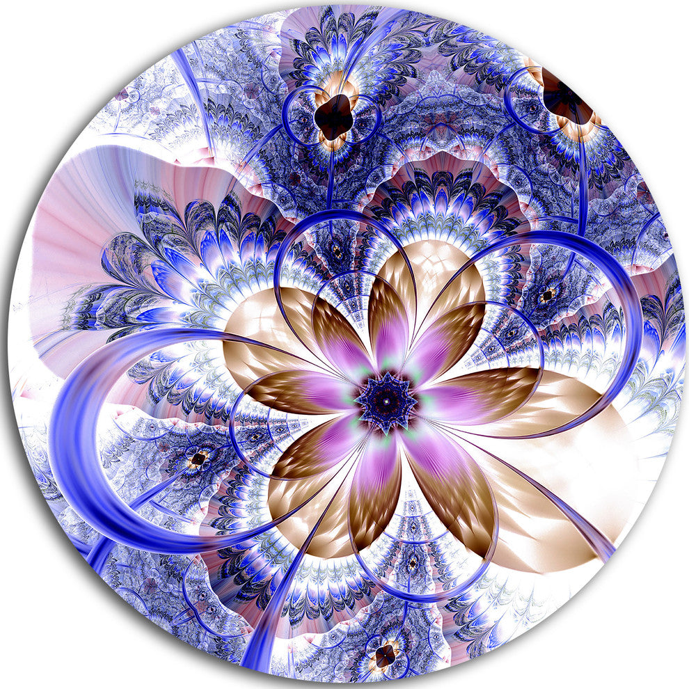 Blue Light Fractal Flower, Digital Art Floral Disc Metal Wall Art, 36"