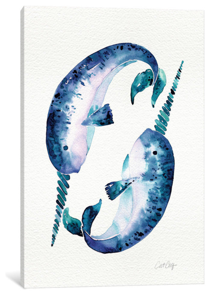 "Blue Narwhals Artprint" by Cat Coquillette, 26x18x1.5