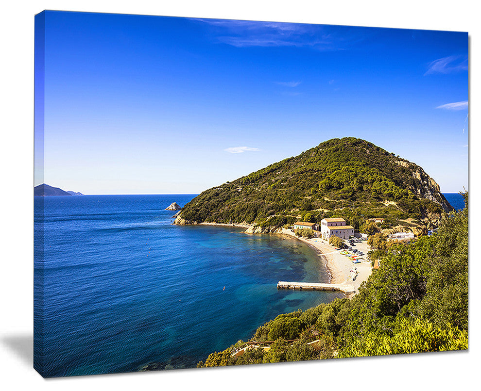 The Blue Seashore at Elba Island canvas art print is sure to make an impression on anyone who sees it. This artwork is gallery wrapped around a 1-inch solid wood frame and arrives carefully packaged and entirely ready to hang on the wall. Design Art only uses the highest resolution and pigments to ensure a crisp colorful print that is never faded or pixelated. This artwork is sure to be a conversation starter in any home or office.