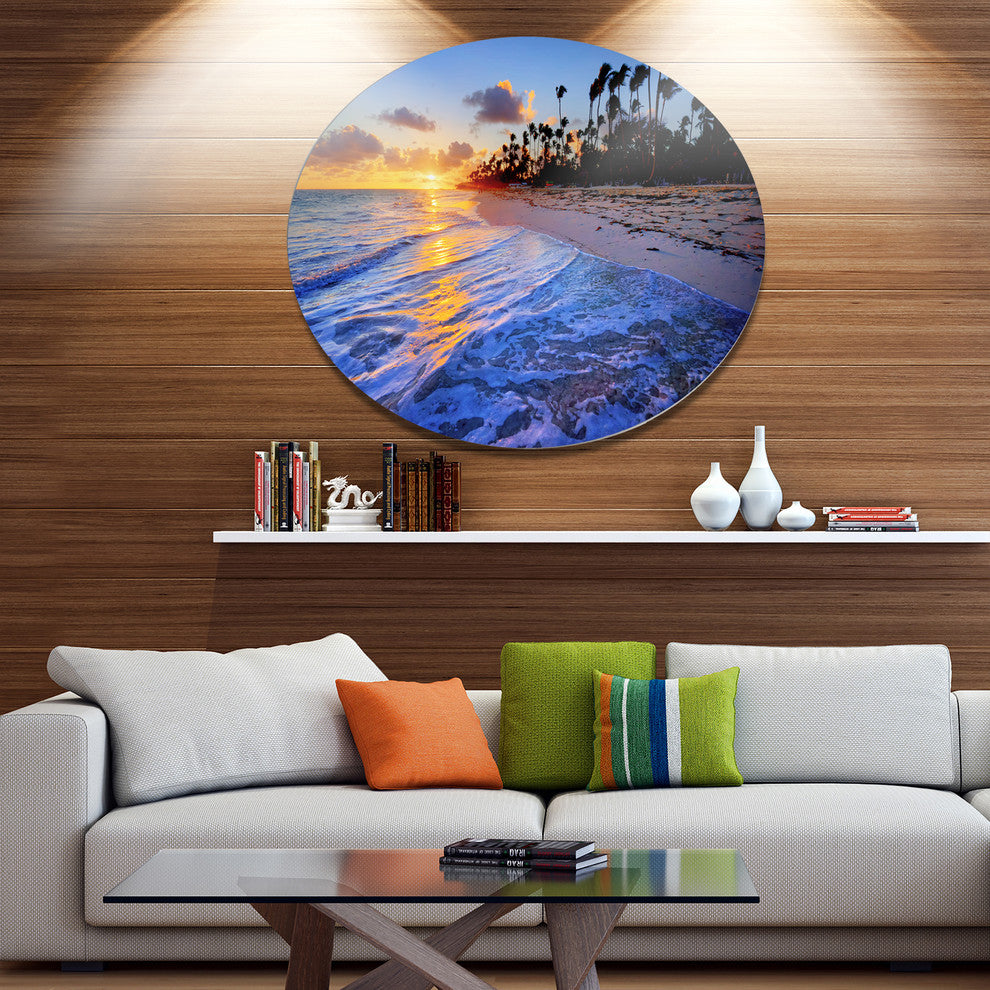 Blue Waves Along The Shore, Seashore Art Large Disc Metal Wall Art, 36"