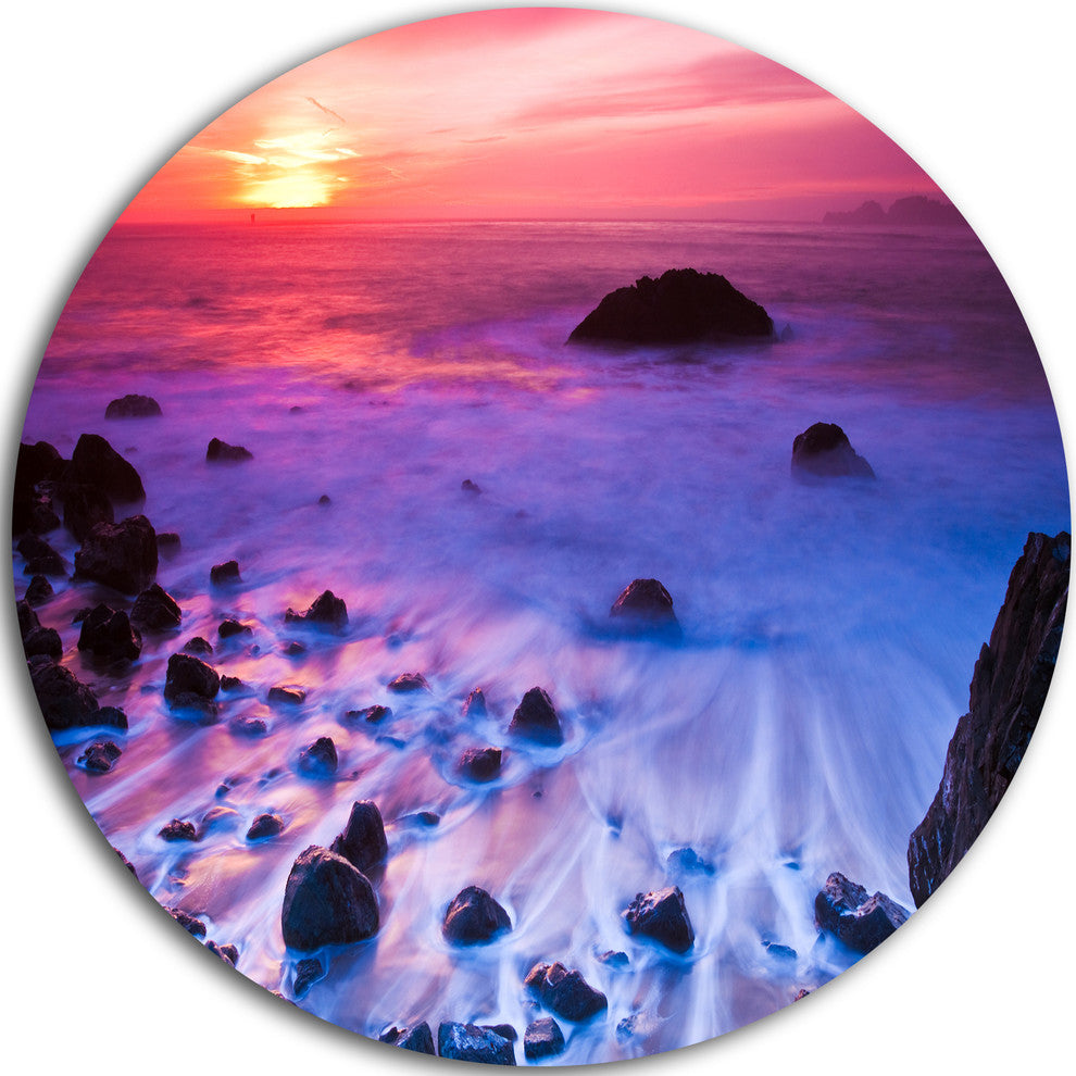 Bluish Waters At Sunset Panorama, Seashore Disc Metal Wall Art, 11"