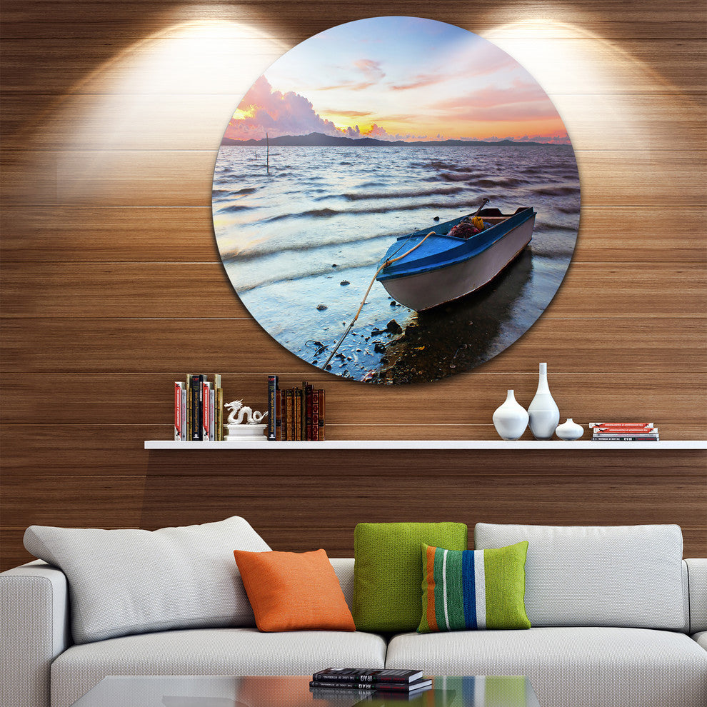 Boat At The Sunset, Landscape Photo Disc Metal Artwork, 11"