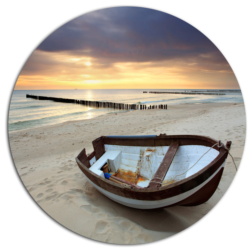 Boat On Beautiful Sunrise Seashore, Beach Round Wall Art, 36"