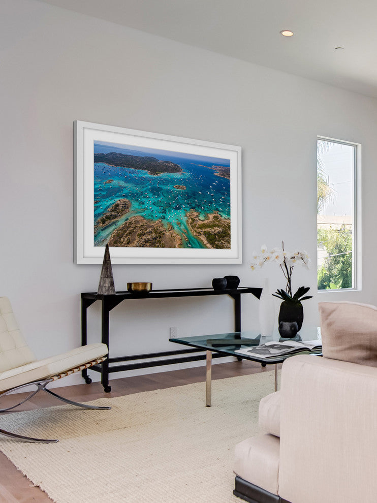 "Boat Party" Framed Painting Print features vivid tones and supple artistry. Mounted in a gorgeous frame, this 18 inch wide by 12 inch tall piece will be an exceptional addition to any room. Top quality Giclee print on high resolution Archive Paper Art work by Francesco Cattuto Professionally framed and mounted on acid free archive matte High quality durable non-warping frame Arrives ready to hang Includes a certificate of authenticity Made in the USA