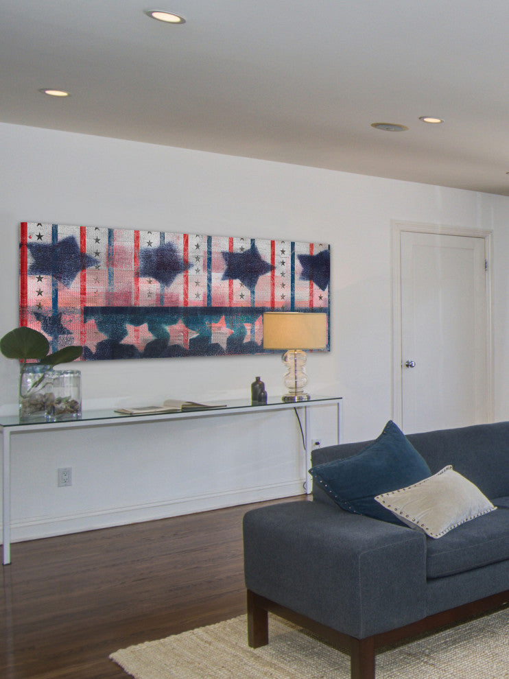 Striking and unique, the "Bold Stars" Print on Canvas by Parvez Taj will bring your walls to life. Printed on canvas, this 60 inch wide by 20 inch tall contemporary artwork will make a statement in any living room, dining room, or bedroom.- Fine art canvas print by Parvez Taj- Professionally hand stretched- Gallery wrapped in sustainable, non-warping wood- Arrives ready to hang- Made in the USA- Includes a certificate of authenticity- Artist signature on the front