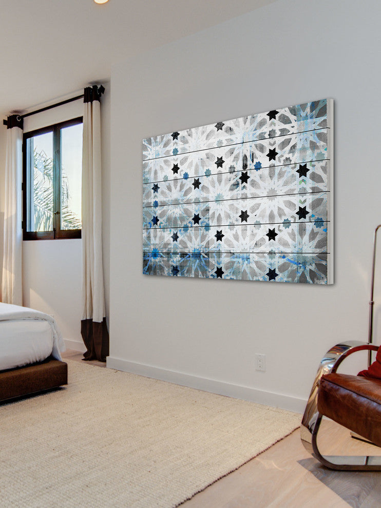 Striking and unique, the "Bornos" Print on White Wood by Parvez Taj will bring your walls to life. Printed on white wood, this 60 inch wide by 40 inch tall contemporary artwork will make a statement in any living room, dining room, or bedroom.- Fine art UV ink print on white wood by Parvez Taj- wood pieces are hand-selected by Fine craftsmen for printing- Arrives ready to hang- Includes a certificate of authenticity- Artist signature on the front