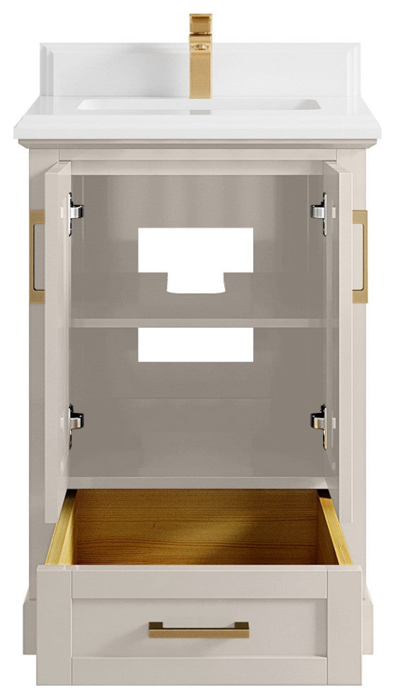 Boston 24" Single Sink Bath Vanity in Fine Grain 1.5" White Quartz